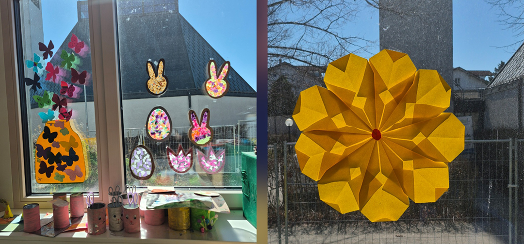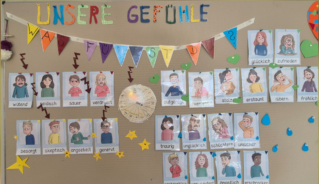 Unsere Vogelscheuche freut sich über ihren neuen Erdbeerhut. Die OGTS-Kinder sind sehr kreativ beim Basteln und Malen für Ostern. Außerdem beschäftigen wir uns noch gemeinsam mit dem Thema Gefühle.
